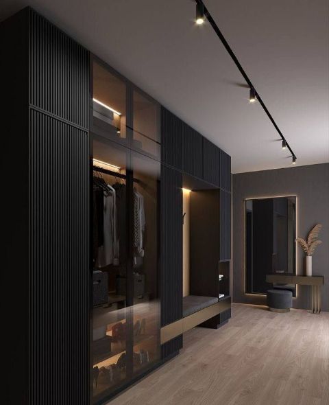 В наши сборные конструкции трендовых гардеробных входит в подарок пуфик - это классическое сочетание покорило многих.